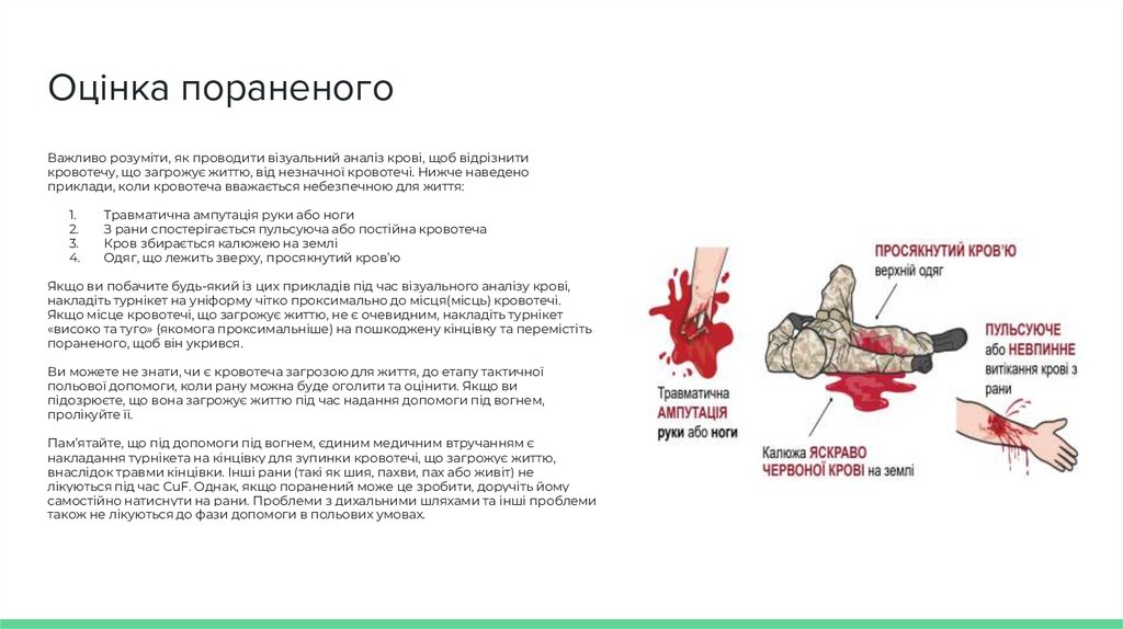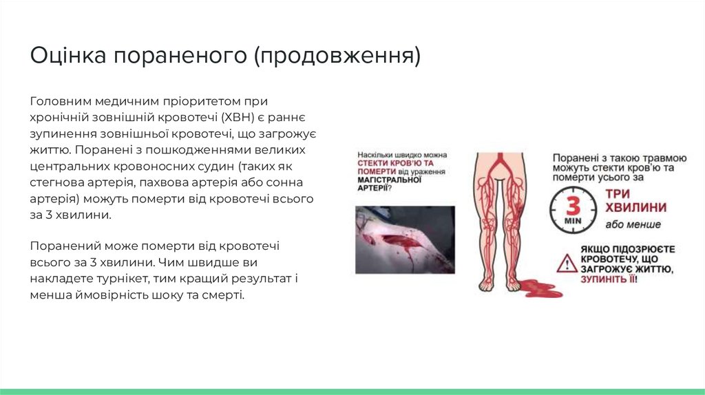 Оцінка пораненого (продовження)Головним медичним пріоритетом при