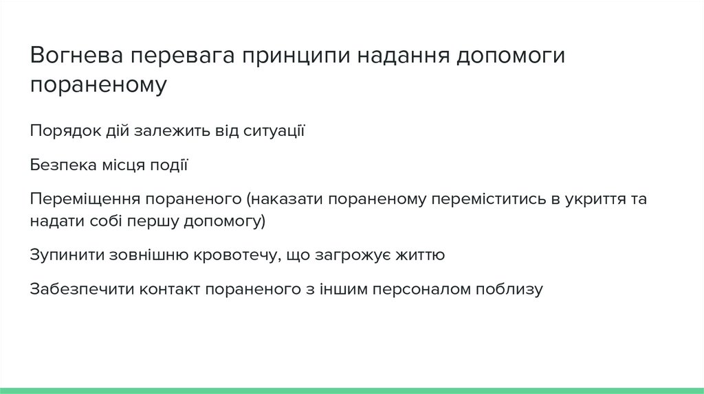 Пам’ятайте, що під допомоги під вогнем, єдиним медичним втручанням є