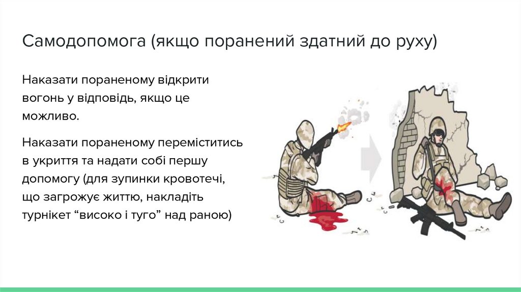 Переміщення пораненого (наказати пораненому переміститись в укриття та