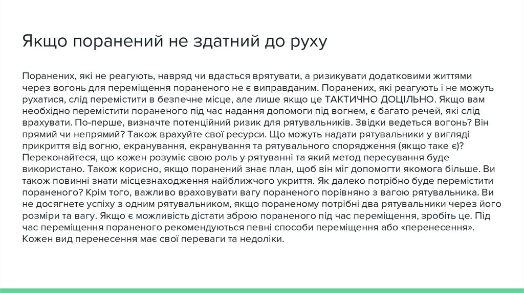 рухатися, слід перемістити в безпечне місце, але лише якщо це ТАКТИЧНО ДОЦІЛЬНО. Якщо вам