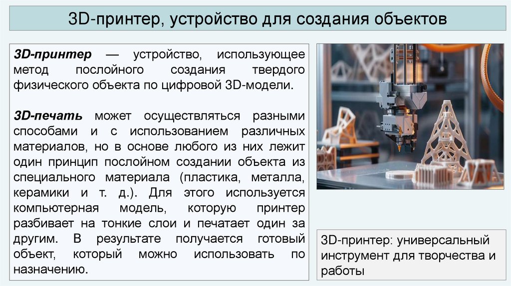 3D-принтер, устройство для создания объектов3D-принтер — устройство, использующее