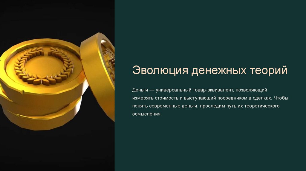 Эволюция денежных теорийДеньги — универсальный товар-эквивалент, позволяющий