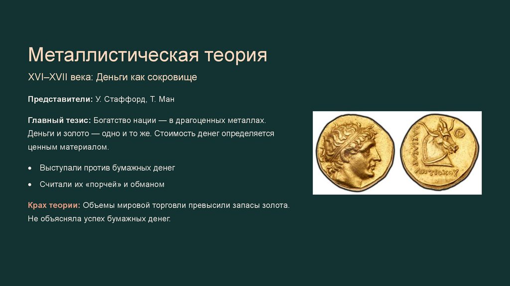 Металлистическая теорияXVI–XVII века: Деньги как сокровище