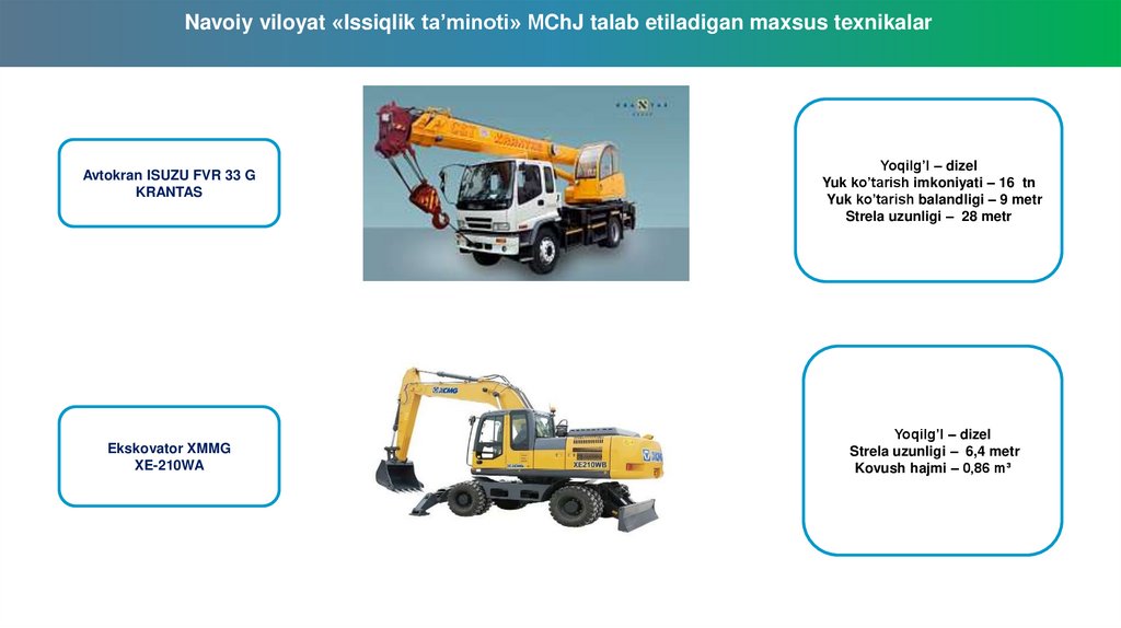 Navoiy viloyat «Issiqlik ta’minoti» МChJ talab etiladigan maxsus texnikalarAvtokran ISUZU FVR 33 G