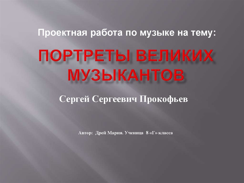 Проектная работа по музыке на тему:Сергей Сергеевич Прокофьев