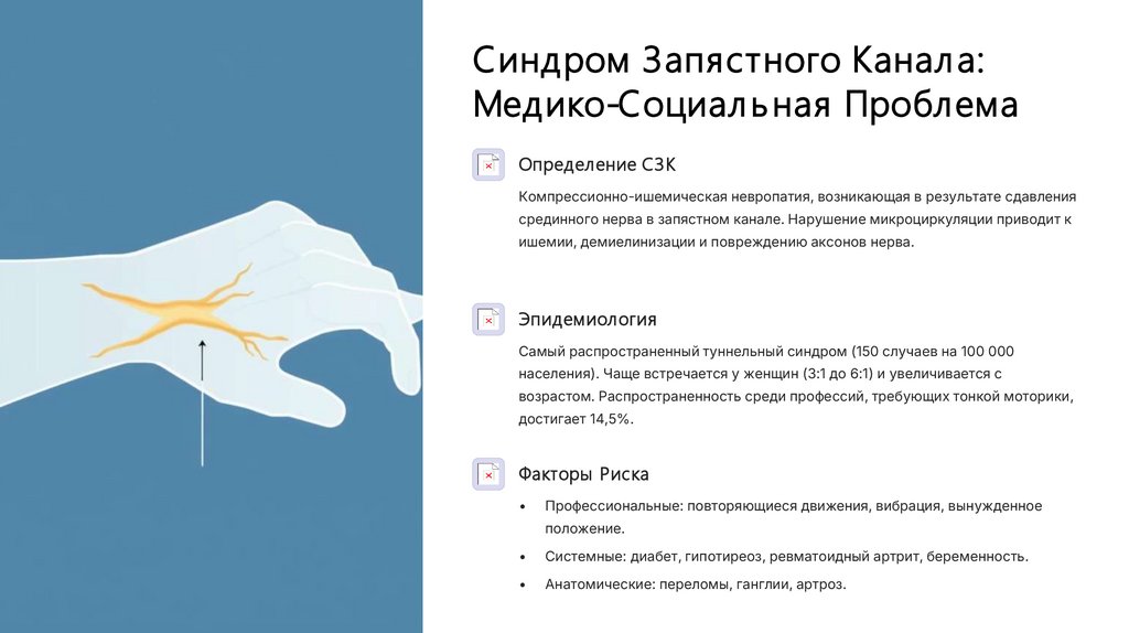 Введение: Актуальность ПроблемыСиндром запястного канала (СЗК) — наиболее