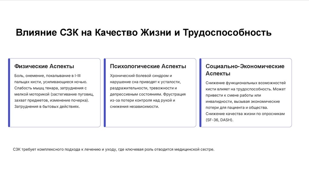 Влияние СЗК на Качество Жизни и ТрудоспособностьФизические Аспекты