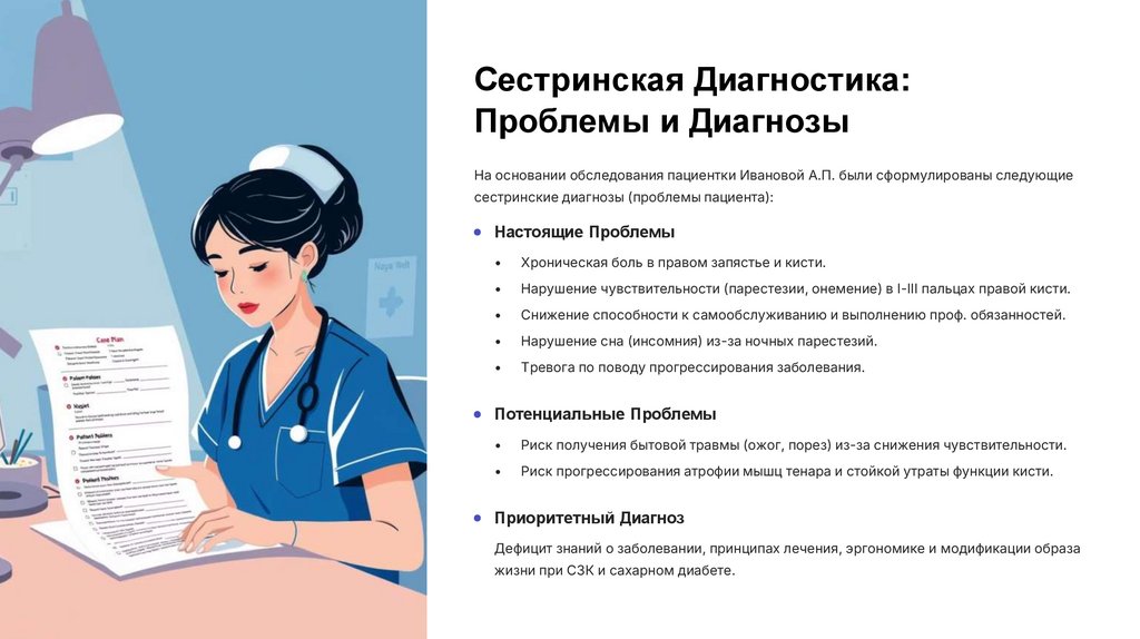 На основании обследования пациентки Ивановой А.П. были сформулированы следующие