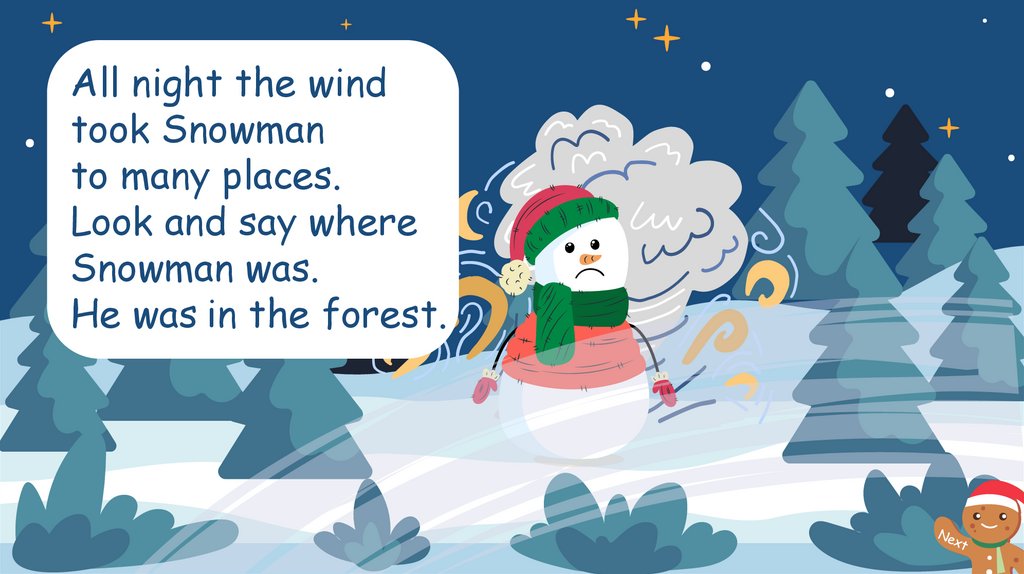 Finally, the wind stopped. Andwhere is our Snowman now?