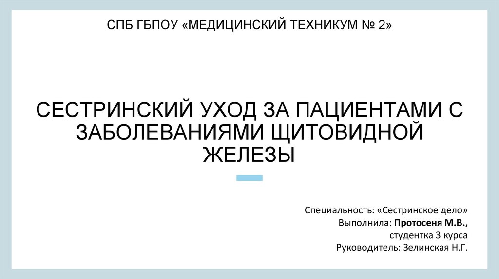 Сестринский уход за пациентом с заболеванием щитовидной