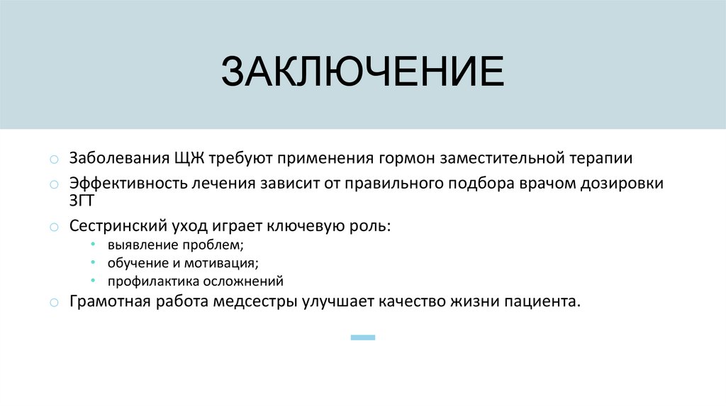 ЗАКЛЮЧЕНИЕo Заболевания ЩЖ требуют применения гормон заместительной терапии