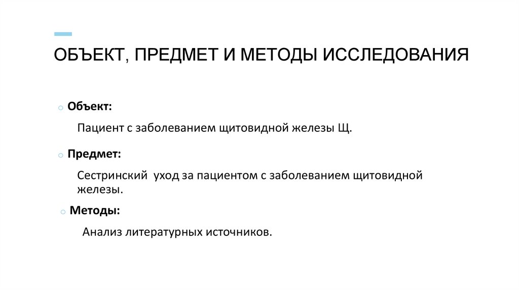 ОБЪЕКТ, ПРЕДМЕТ И МЕТОДЫ ИССЛЕДОВАНИЯo Объект:
