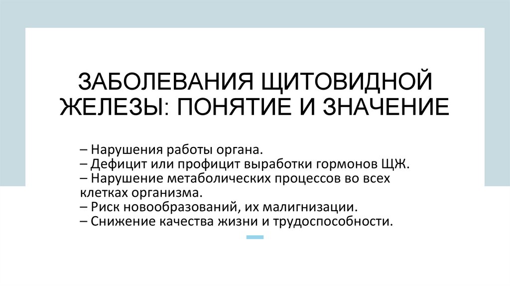 ЗАБОЛЕВАНИЯ ЩИТОВИДНОЙЖЕЛЕЗЫ: ПОНЯТИЕ И ЗНАЧЕНИЕ