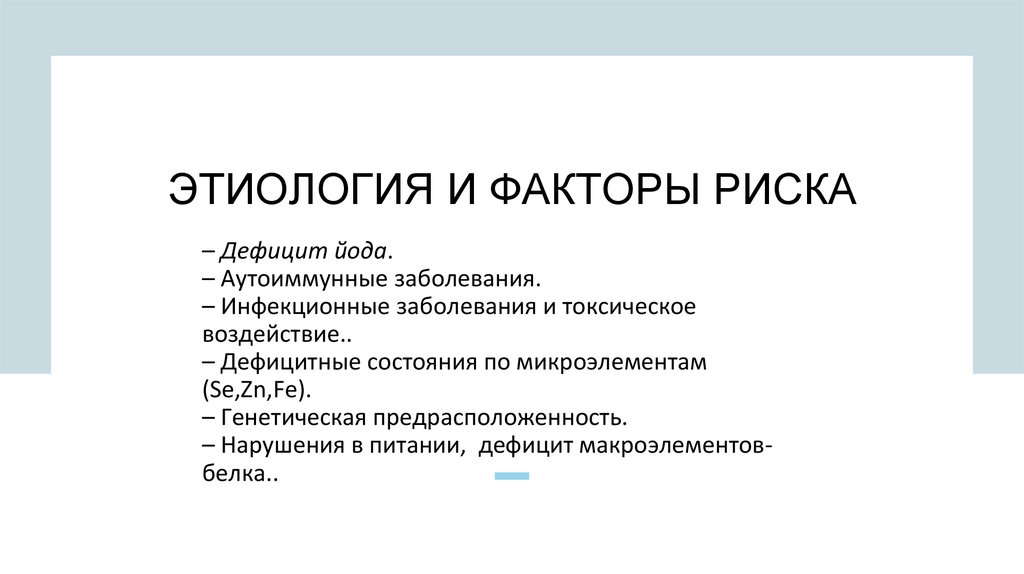 ЭТИОЛОГИЯ И ФАКТОРЫ РИСКА– Дефицит йода.