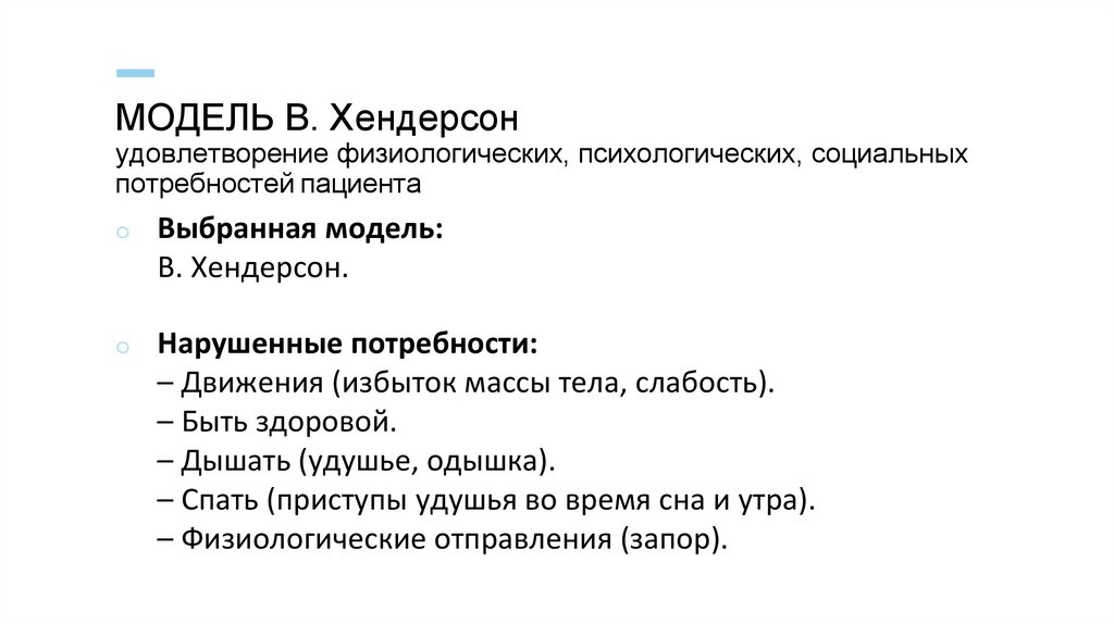 МОДЕЛЬ В. Хендерсонудовлетворение физиологических, психологических, социальных