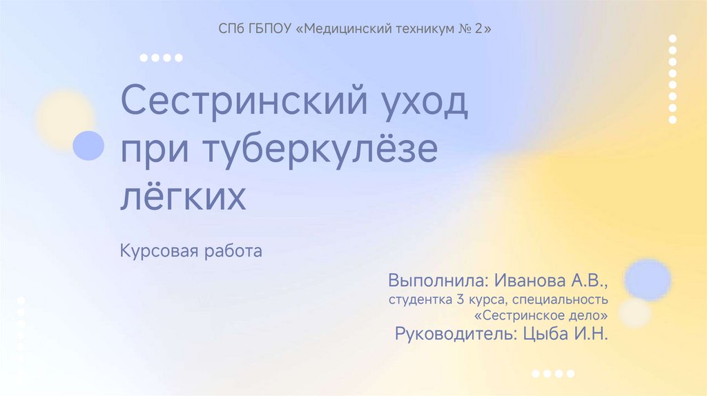 СПб ГБПОУ «Медицинский техникум № 2»Сестринский уход