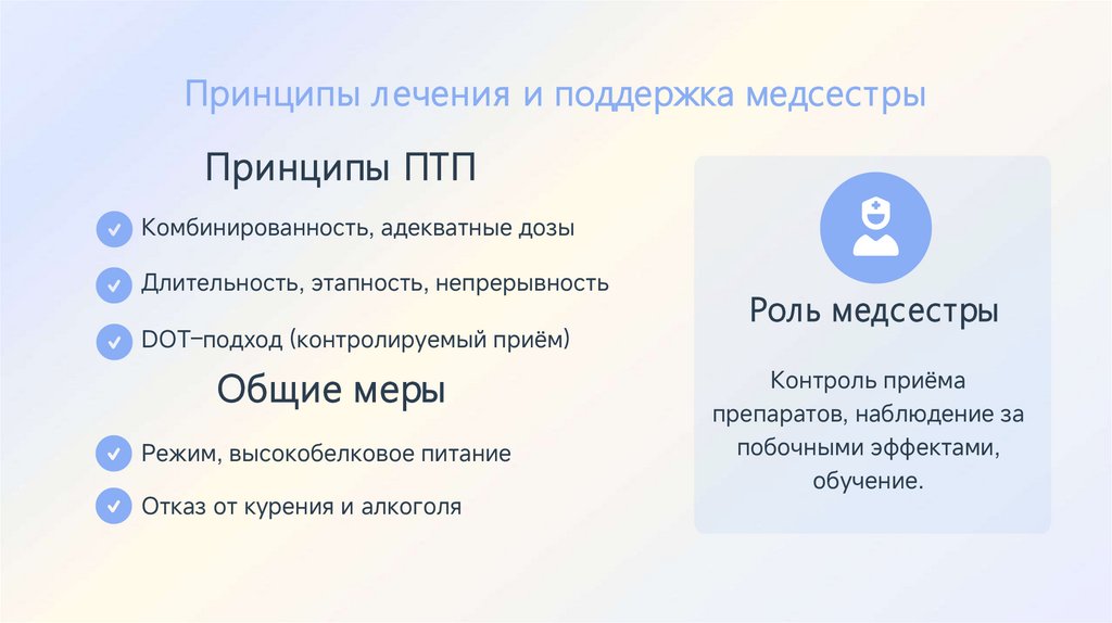 Принципы лечения и поддержка медсестрыПринципы ПТП