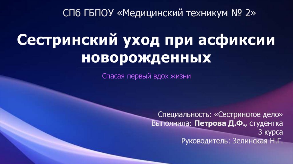 СПб ГБПОУ «Медицинский техникум № 2»Сестринский уход при асфиксии