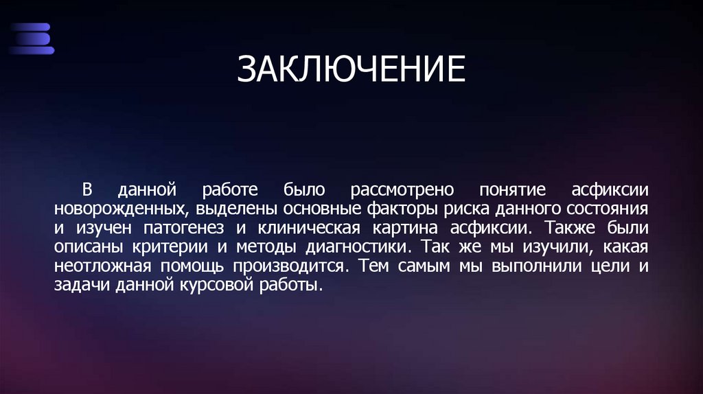 ЗАКЛЮЧЕНИЕВ данной работе было рассмотрено понятие асфиксии