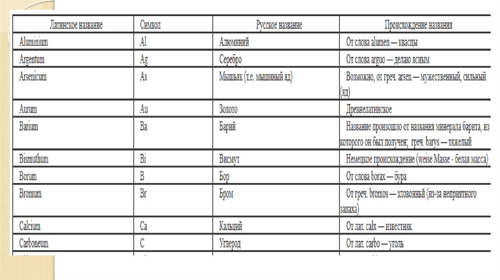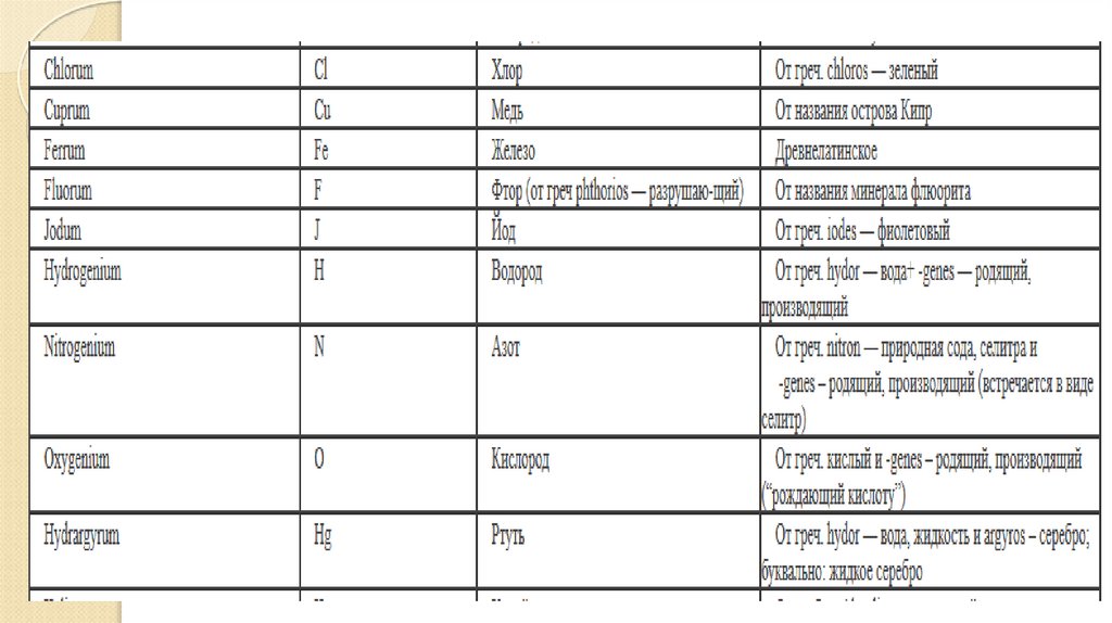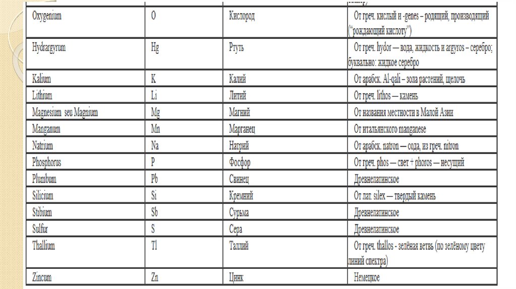 латинские названия: Na – Sodium, Hg – Mercurium, К – Potassium и