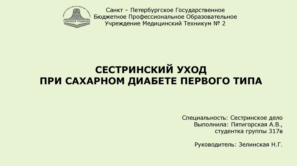 ОБЪЕКТ - сестринский уход за детьми, страдающими сахарным диабетом