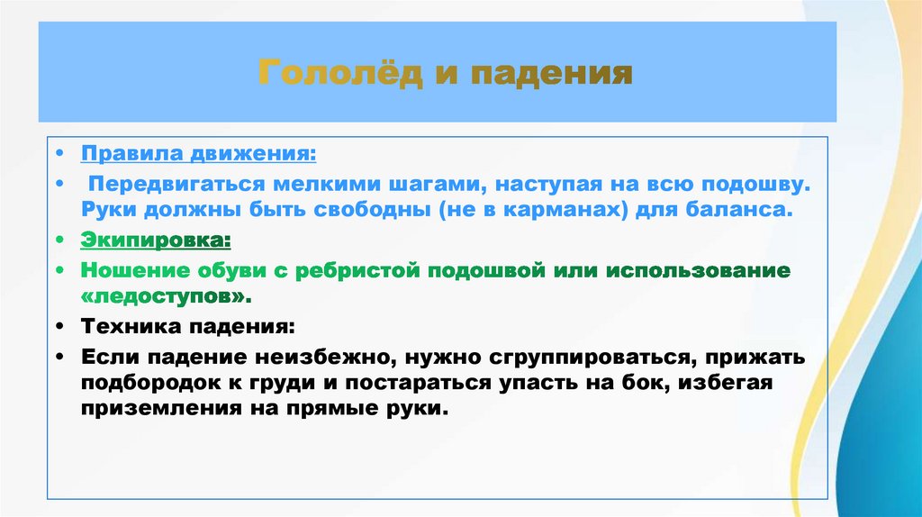 • Если падение неизбежно, нужно сгруппироваться, прижать