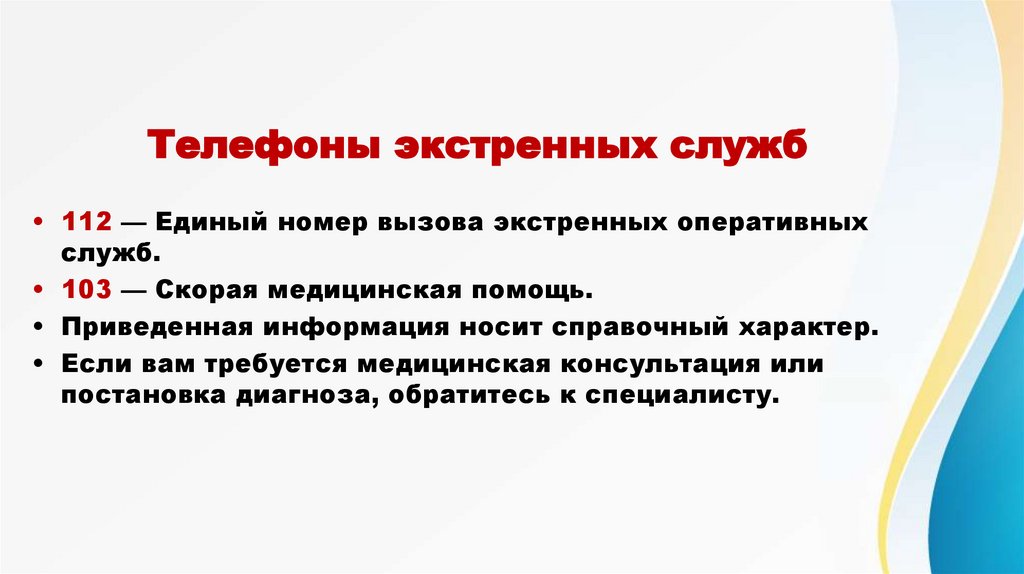 Телефоны экстренных служб• 112 — Единый номер вызова экстренных оперативных