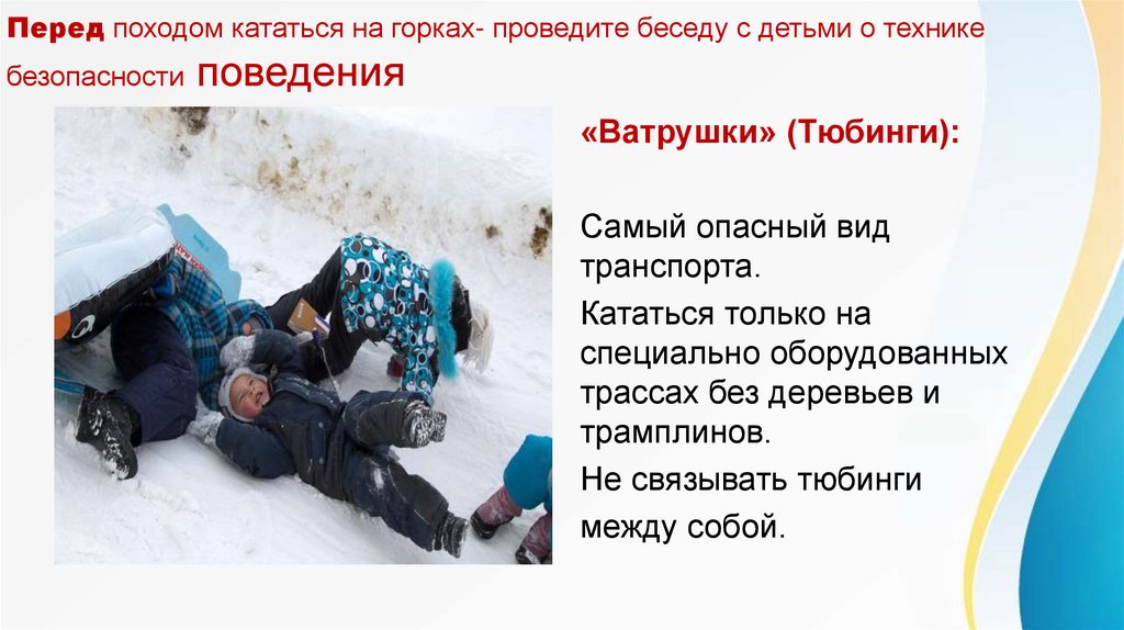 Перед походом кататься на горках- проведите беседу с детьми о техникебезопасности поведения