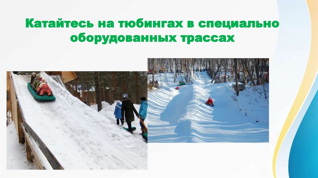 деревьев и трамплинов. Не связывать тюбинги между собой.