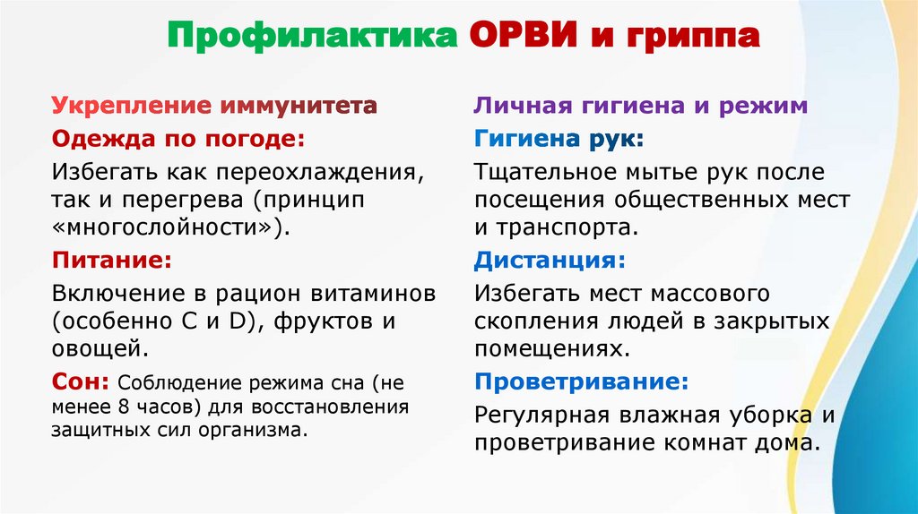 Профилактика ОРВИ и гриппаЛичная гигиена и режим