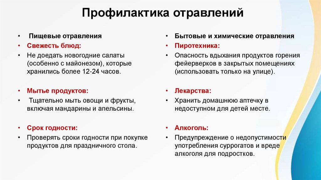 Профилактика отравлений• Пищевые отравления