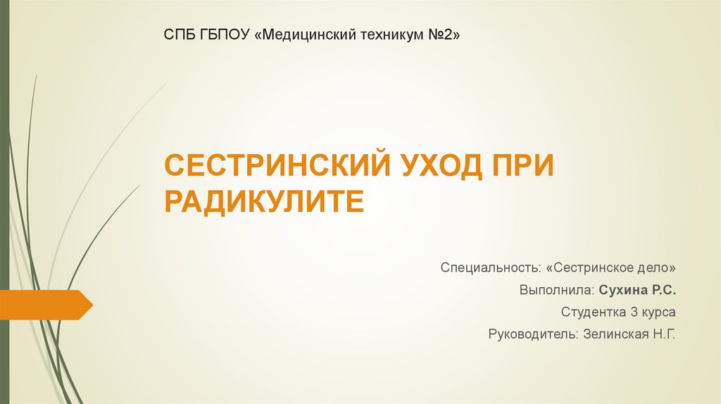 СЕСТРИНСКИЙ УХОД ПРИРАДИКУЛИТЕ