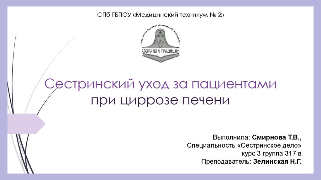 СПб ГБПОУ «Медицинский техникум № 2»Сестринский уход за пациентами