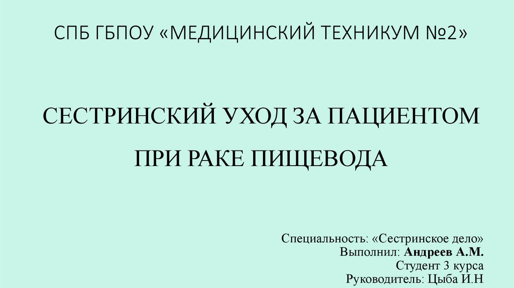 СЕСТРИНСКИЙ УХОД ЗА ПАЦИЕНТОМПРИ РАКЕ ПИЩЕВОДА