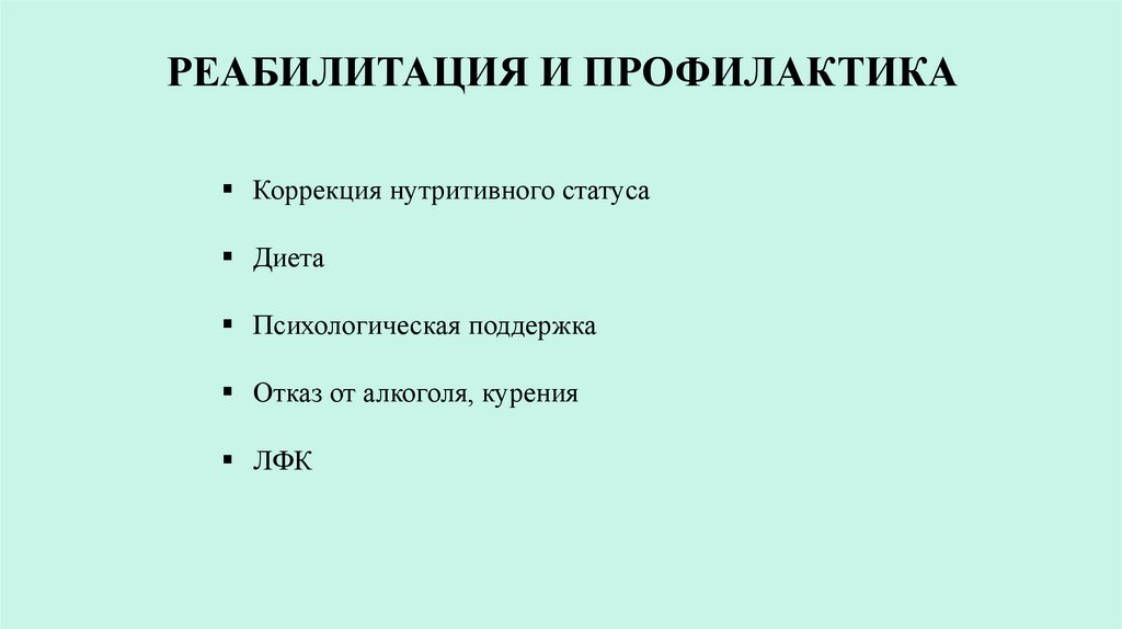 РЕАБИЛИТАЦИЯ И ПРОФИЛАКТИКАКоррекция нутритивного статуса