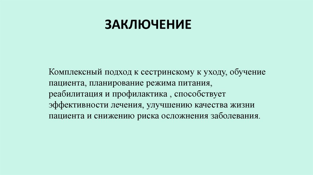 ЗАКЛЮЧЕНИЕКомплексный подход к сестринскому к уходу, обучение