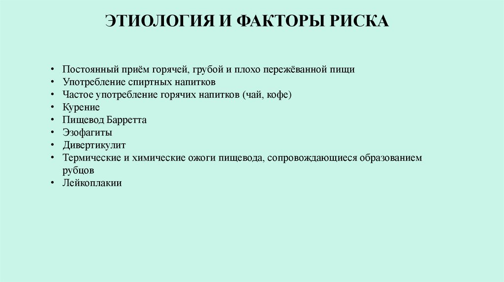ЭТИОЛОГИЯ И ФАКТОРЫ РИСКАПостоянный приём горячей, грубой и плохо пережёванной пищи