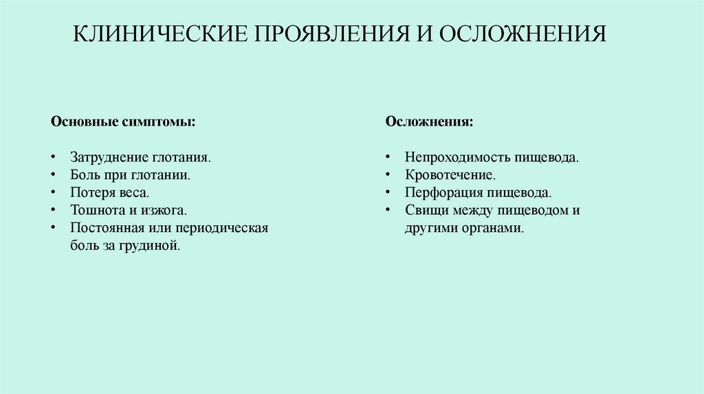 просвет пищевода , прорастает сквозь его стенку и распространяется на находящиеся