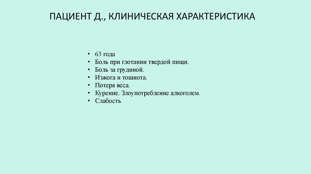 ПАЦИЕНТ Д., КЛИНИЧЕСКАЯ ХАРАКТЕРИСТИКА63 года