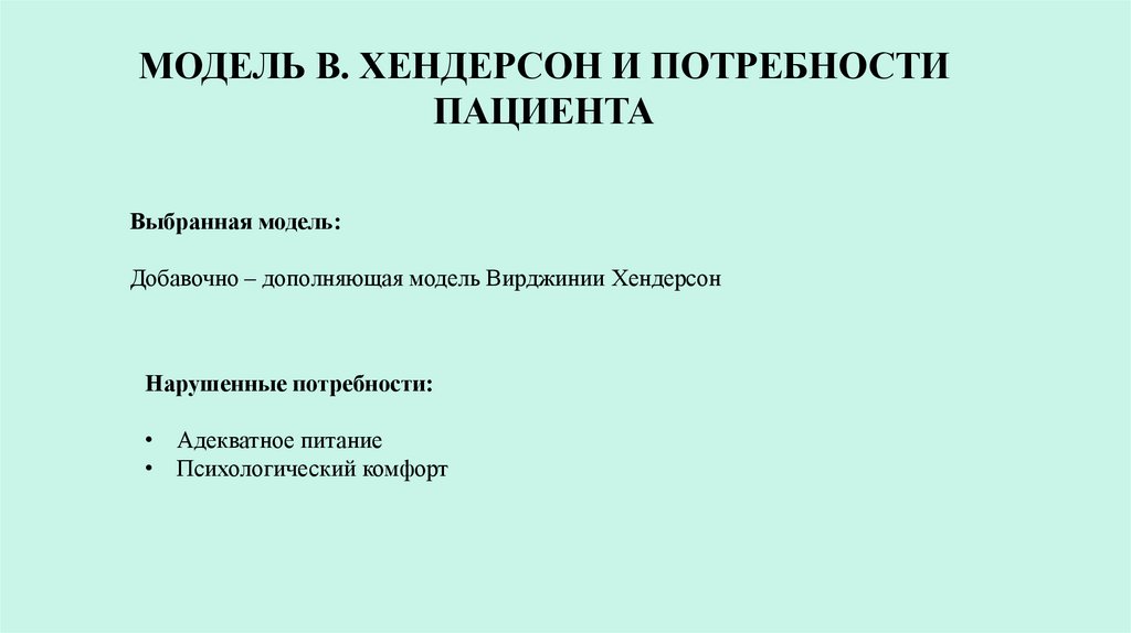МОДЕЛЬ В. ХЕНДЕРСОН И ПОТРЕБНОСТИПАЦИЕНТА
