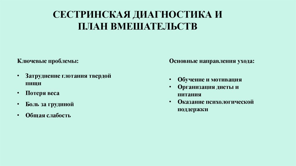СЕСТРИНСКАЯ ДИАГНОСТИКА ИПЛАН ВМЕШАТЕЛЬСТВ