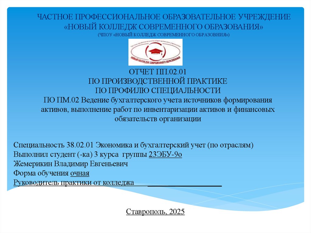 ПО ПМ.02 Ведение бухгалтерского учета источников формирования