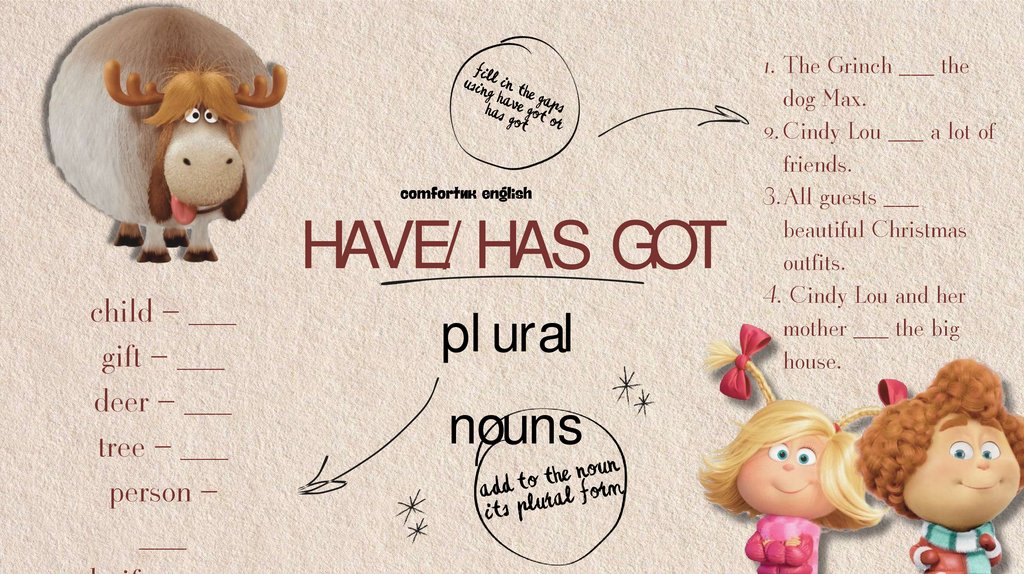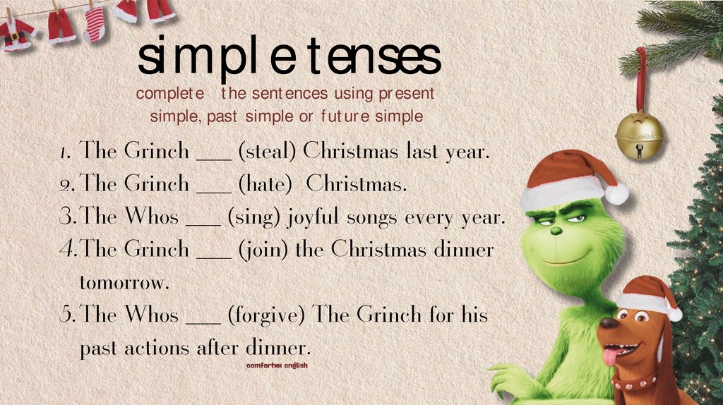 1. The Grinch ___ (steal) Christmas last year.
