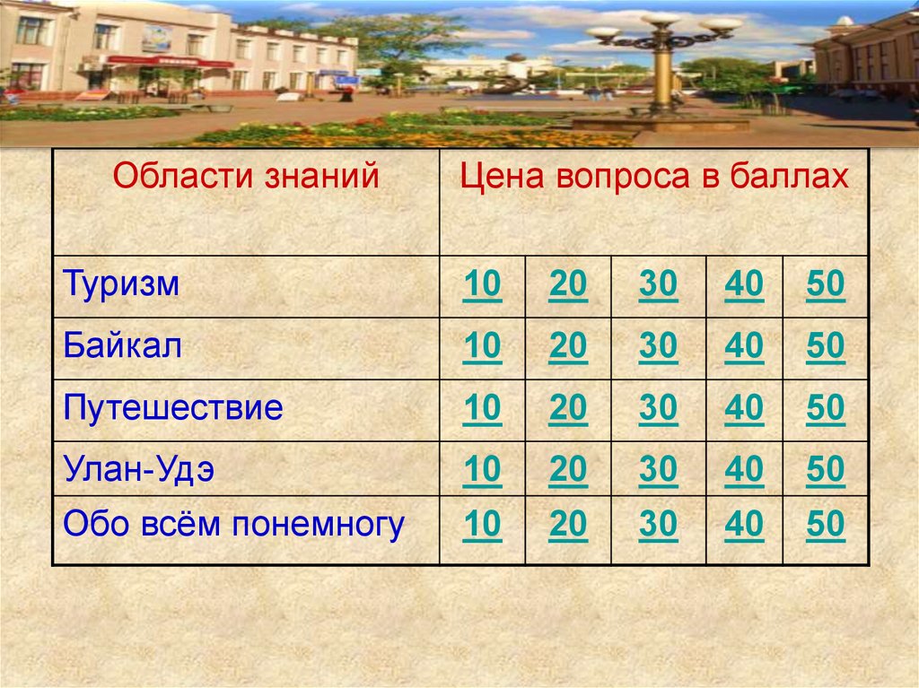 Области знанийЦена вопроса в баллах