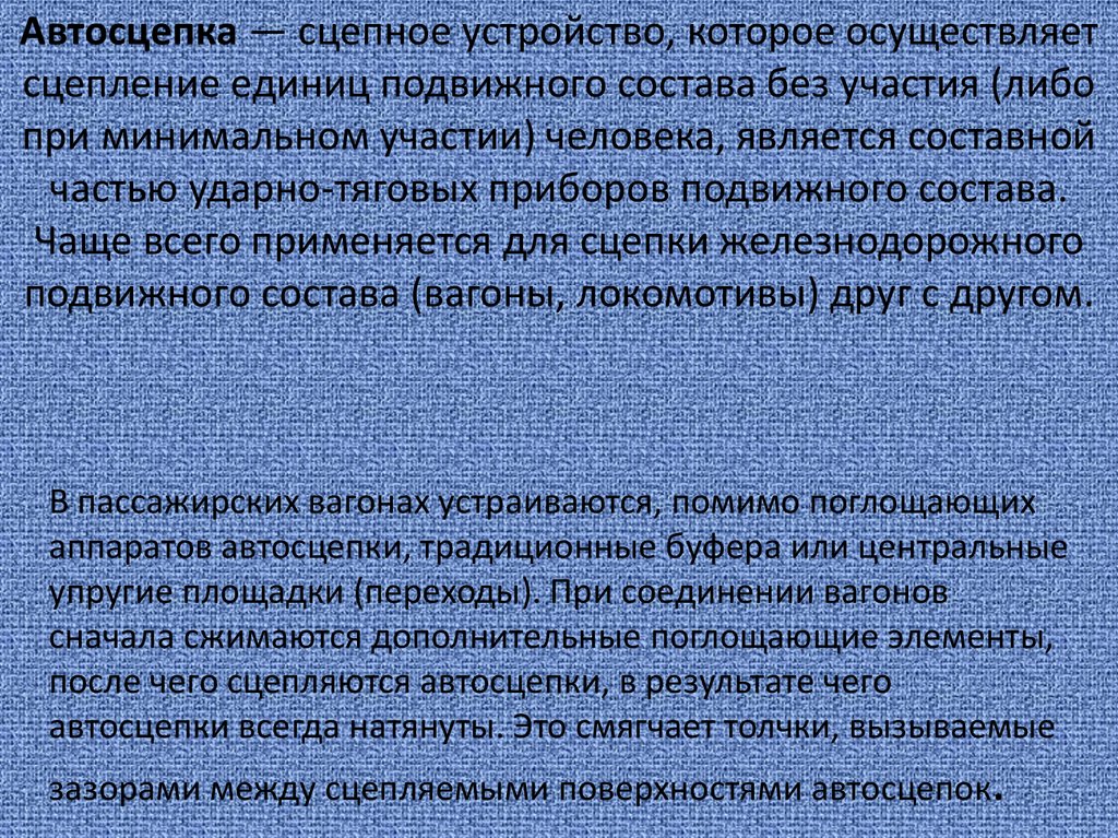 автосцепки всегда натянуты. Это смягчает толчки, вызываемые