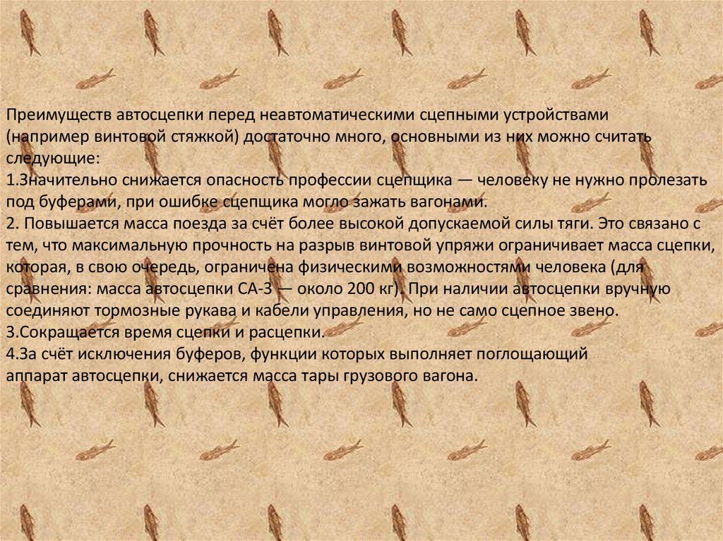 1.Значительно снижается опасность профессии сцепщика — человеку не нужно пролезать