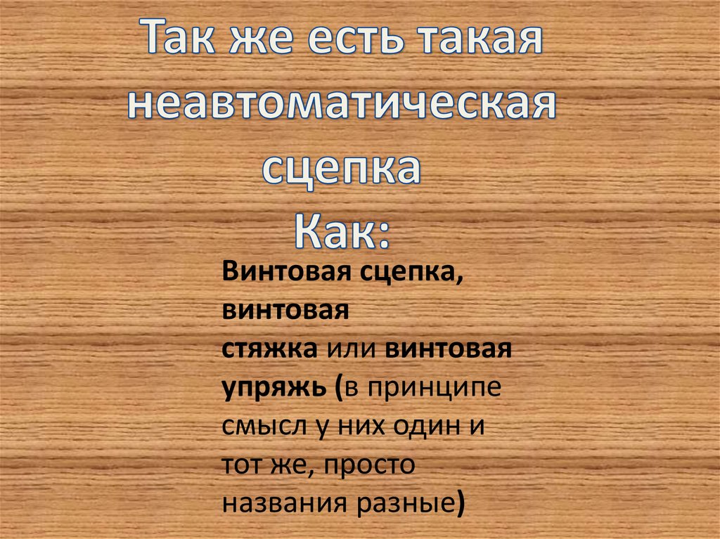 Винтовая сцепка - неавтоматическое сцепное устройство, применяемоена железнодорожном транспорте, является составной частью ударно-тяговых