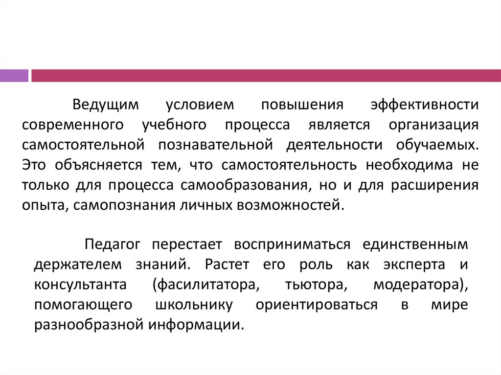 5. Работа с деятельностью учащегося, передача учащимся не просто знаний, а способов работы со знаниями