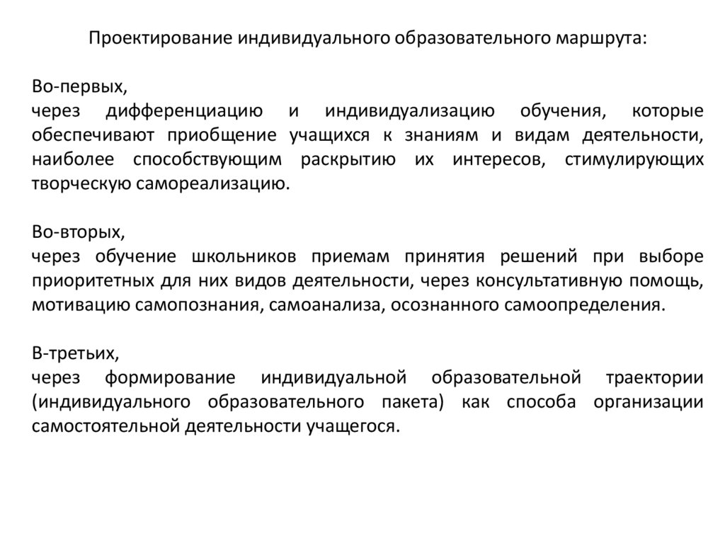 Проектирование индивидуального образовательного маршрута:Во-первых,