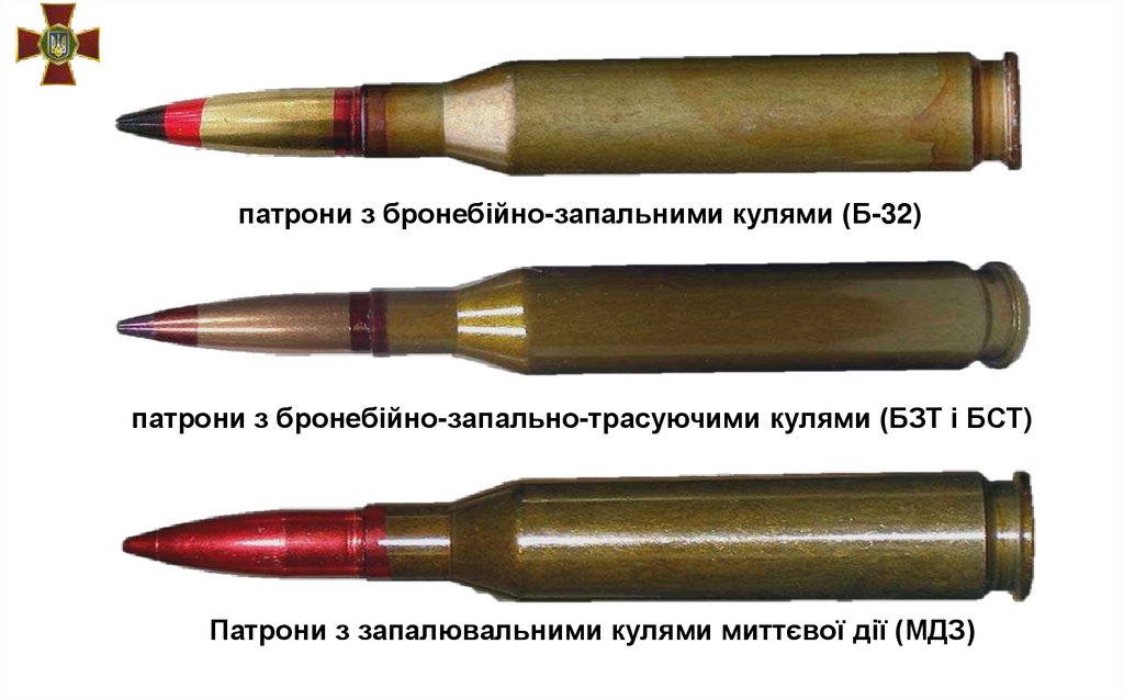 патрони з бронебійно-запальними кулями (Б-32)патрони з бронебійно-запально-трасуючими кулями (БЗТ і БСТ)